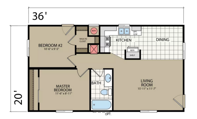720 Square Feet | 2 Bedrooms | 1 Bathrooms