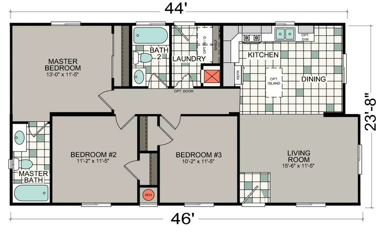 1065 Square Feet, 3 Bedrooms, 2 Bathrooms